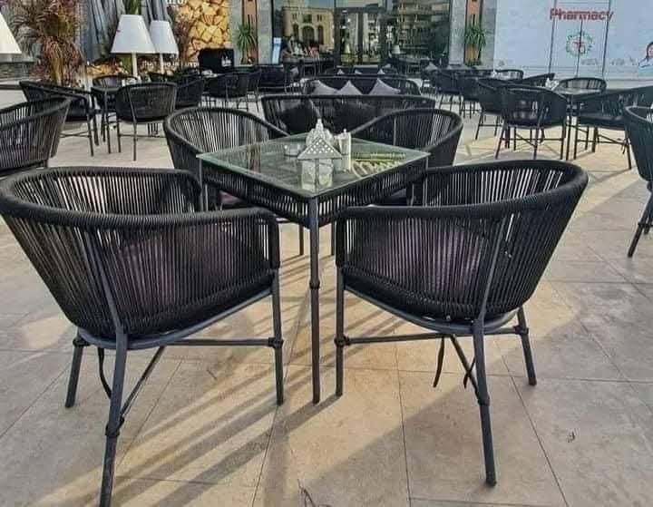 طقم أثاث خارجي بتصميم عصري وأنيق، مثالي للحدائق والبلكونات والتراسات والكافيهات. مصنوع من خامات عالية الجودة مقاومة للعوامل الجوية، ليجمع بين المتانة والراحة في نفس الوقت. يتميز بتصميم مريح وتشطيب راقٍ يضيف لمسة فخامة لأي مساحة خارجية، مع سهولة في التنظيف والاستخدام اليومي.