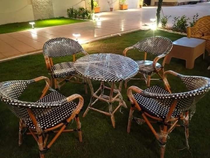 طقم أثاث خارجي بتصميم عصري وأنيق، مثالي للحدائق والبلكونات والتراسات والكافيهات. مصنوع من خامات عالية الجودة مقاومة للعوامل الجوية، ليجمع بين المتانة والراحة في نفس الوقت. يتميز بتصميم مريح وتشطيب راقٍ يضيف لمسة فخامة لأي مساحة خارجية، مع سهولة في التنظيف والاستخدام اليومي.
