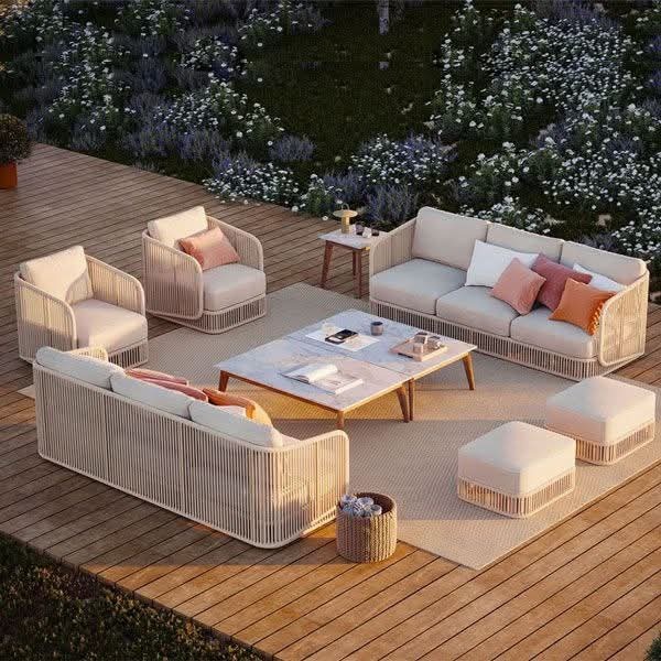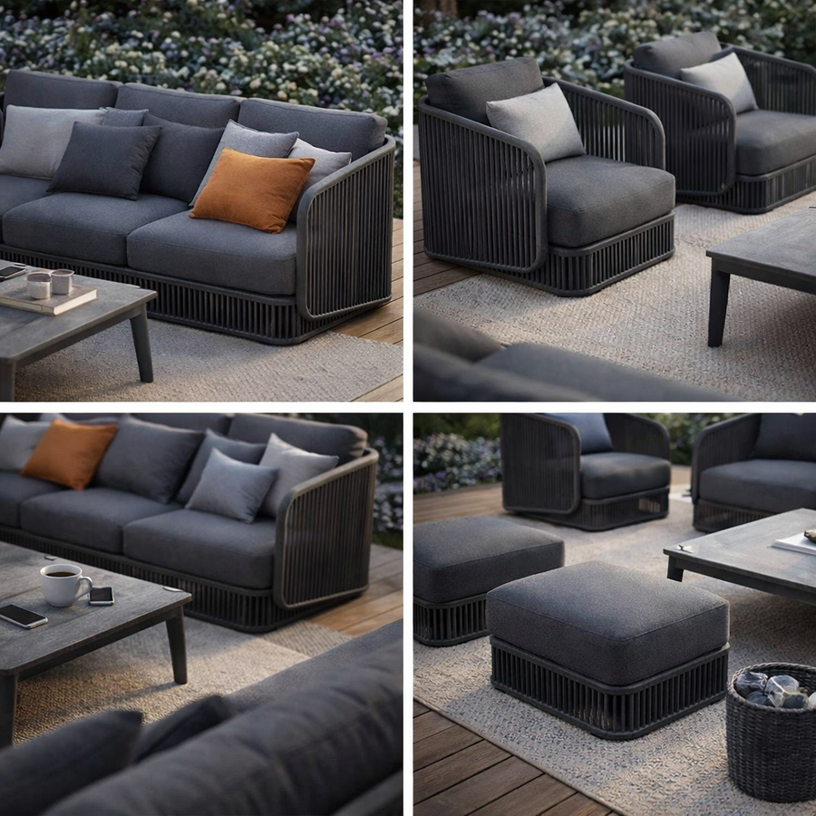 حوّل مساحتك الخارجية إلى واحة من الراحة والفخامة مع طقم الجلسات الخارجية الفاخر المصمم بعناية ليجمع بين الأناقة العصرية والمتانة العالية. يتميز الطقم بتصميم أنيق يناسب الحدائق، التراسات، البلكونات الواسعة، والأسطح، ليمنحك تجربة جلوس مريحة ومظهر راقٍ يدوم طويلاً.